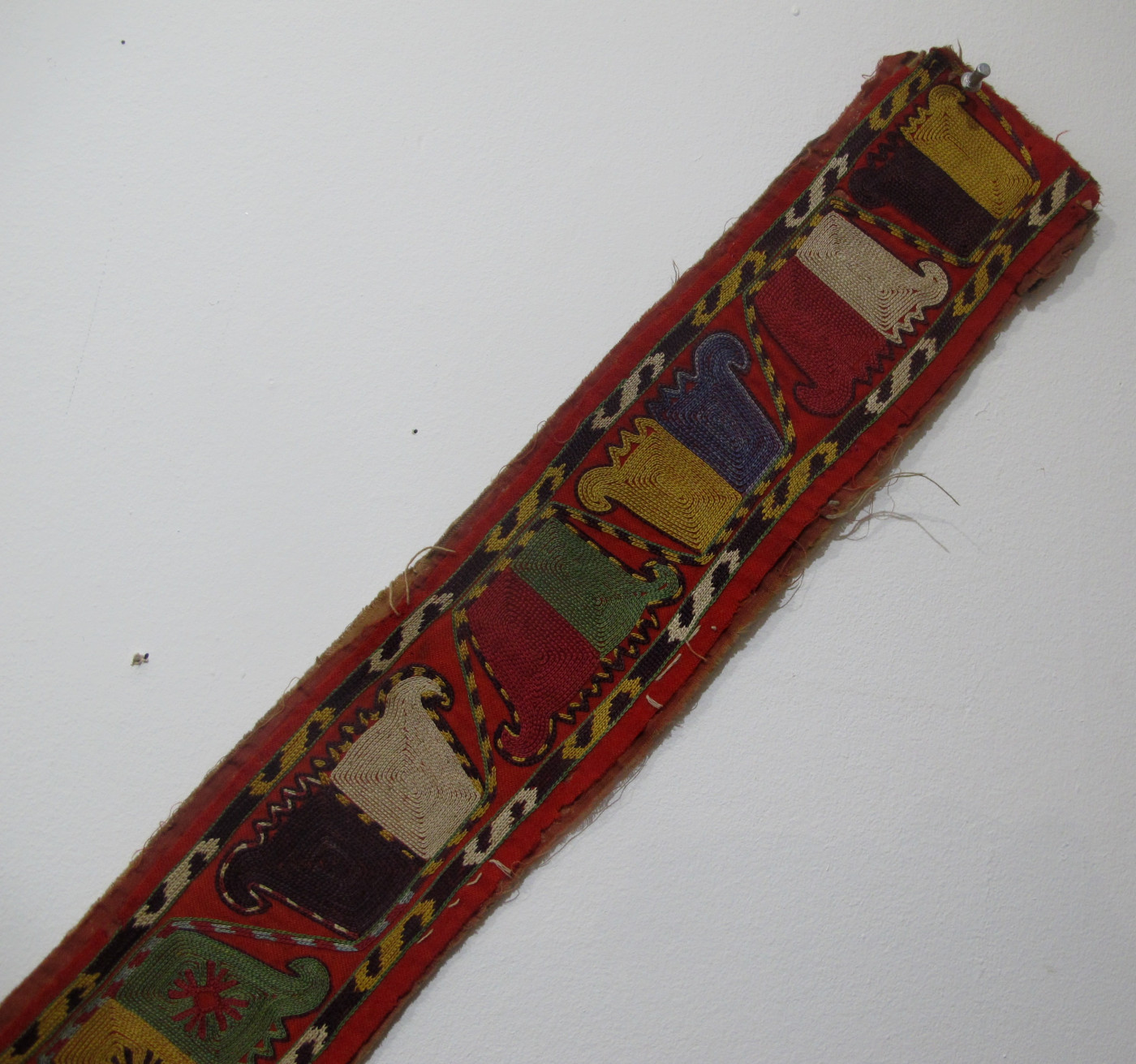 This is a beautiful piece of Lakai embroidery from Uzbekistan dating to the end of the 19th century. Worked in coloured silks on a red plain weave background, it was probably made originally as part of a robe or clothing. All the dyes appear to be natural. Kaleidoscopic yet serene at the same time. In generally good condition. Orginal lining intact.