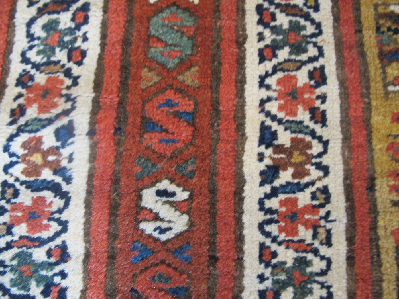 Lovely saffron yellow field with interesting borders. Excellent condition.
