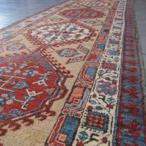 This Sarab runner from North-West Persia is both pretty and woven in a very useful size, ideal for all sorts of decorative spaces particularly corridors and hallways. Woven on an all wool foundation with soft wool to the pile and lovely natural dyes, it feels like a piece woven in the transition period between tribal weavings made for domestic use, and the later products made for commercial purposes in North-West Persia in the last quarter of the 19th century. In generally good condition and professionally cleaned in our own workshop.