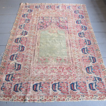 One of two Ghiordes prayer rugs recently purchased from a private collection. Early, rare, and beautiful, this bears all the hallmarks of 18th century Anatolian weaving. Beautiful colours and exceptionally beautiful borders.